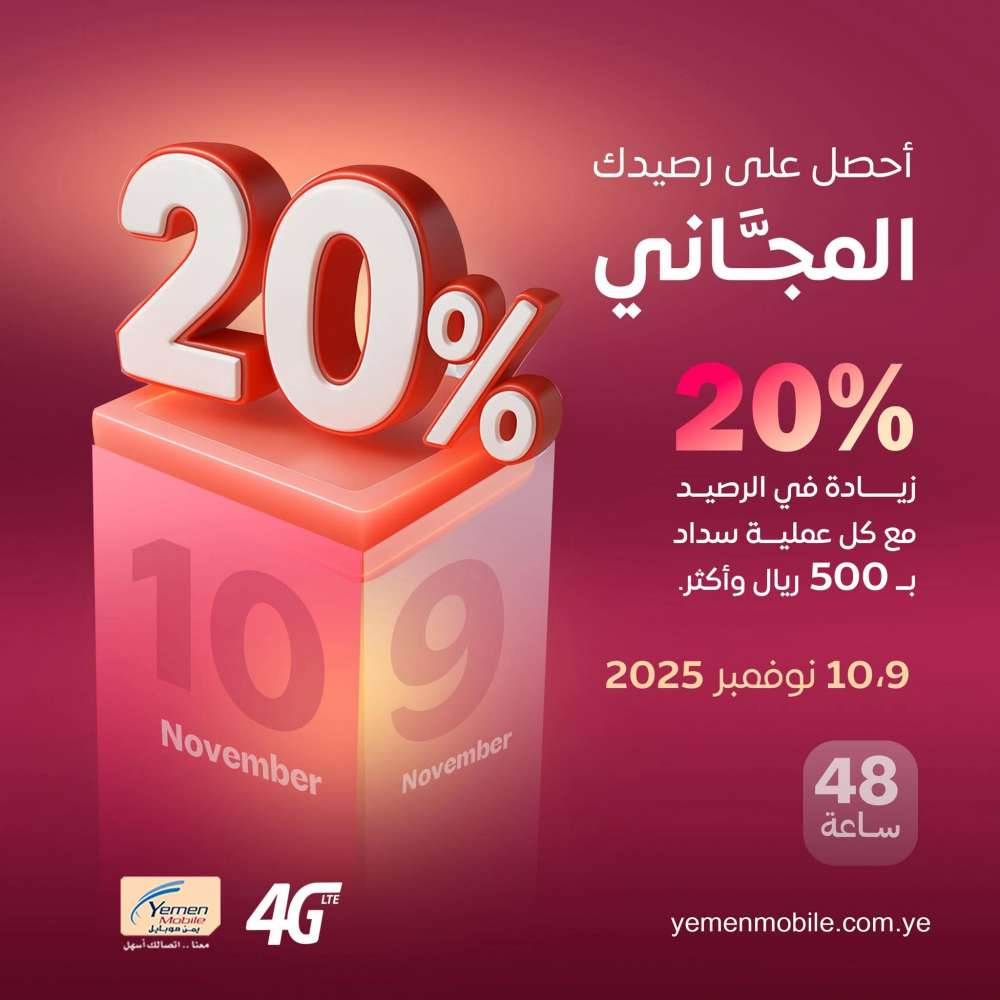 @ تهنئكم إدارة البرق الخاطف لشحن الفوري بعيد الفطر المبارك تقبل الله منا ومنكم صالح الاعمال.....متواجدين بخدمتكم واستقبال ايداعتكم وحوالاتكم @ @ اسعد الله اوقاتكم بالخير والصحة @ @ اسعد الله اوقاتكم بالخير والصحة تتقدم إدارة البرق الخاطف بتهنيتكم بمناسبة شهر رمضان الكريم تقبل الله منا ومنكم صالح الاعمال @ @ refresh @ @ تم إضافة باقات جديدة تجوال الدولي خاصه بالمستخدمين في السعودية *دفع مسبق @ @ refresh @ @ . @ @ مساء الخير من الليلة ان شاءالله الساعة ١٢ بالليل بتتغير أسعار عدن نت تم اضافة ٥٪ ضريبة من عدن نت تصبح الأسعار الرسميه 3150 اللي كان 3000 6300 اللي كان 6000 9450 اللي كان 9000 12600 اللي كان 12000 31500 اللي كان 30000 @ @ @ @ عملائنا الكرام يجب مزامنة كبينت الوائ فاي لتضهر لكم الشبكات المضافه بضغط على السهم الدائري لتضهر الفئات الجديده واتم إضافة كروت شبكه الاسطوره والجود @ @ سيتم إيقاف النضام الساعه11مساء بسبب الاقفال السنوي يرجى اخد نسخ احتياطي من كشف الحساب @ @ refresh @ @ عملائنا الكرام يمكن اخد نسخ احتياطي من كشف الحساب من التقارير وأمن يرغب بي المطابقه قبل تاريخ 31/12 سيتم ارشيف النضام وسيتم ايقاف التطبيق لحين الانتهاء من الاقفال السنوي @ @ @ @ تم اضافة شبكة الجود -المعلا @ @ refresh @ @ @ @ 🎉احصل على رصيد مجاني لفترة محدودة! 🎉 📅 خلال يومي 10,9 نوفمبر 2025 اشحن رصيدك بمبلغ 500 ريال أو أكثر واستمتع بـ زيادة في الرصيد 20% مجاناً 🤩 💡 العرض متاح لجميع المشتركين ⏰ صلاحية الرصيد المجاني: 48 ساعة فقط سارع بالاستفادة قبل انتهاء العرض ⏳ #يمن_موبايل @ @ من YOU عرض خاص✨ لاتفوّت عرض YOU المميز🤩 مجاناً %30 زيادة في رصيد الفورجي عند شراء إحدى باقات الفورجي الشهرية.🚀 * فترة العرض محدودة من الأربعاء 5-11-2025 الساعة 12:00 منتصف الليل حتى الجمعة 7-11-2025 الساعة 11:59 مساءً. * الزيادة المجانية تُستخدم بنفس وقت وصلاحية استخدام الباقة @ @ @